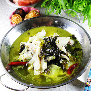 原料:泡青菜、草鱼、辣椒、羊肉片、苦菊、鱼丸、白酒、盐。