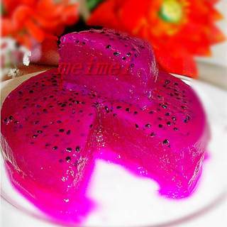 原料:火龙果肉、燕菜丝、香兰叶、白糖、水。