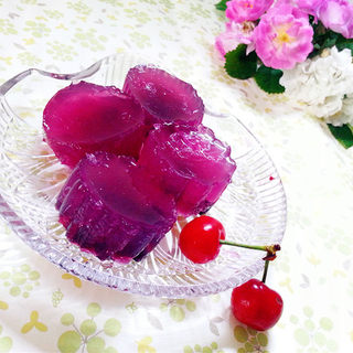 原料:蓝莓、吉利丁片、水、柠檬汁、糖。