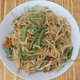 原料:面粉、豆角、西红柿、圆葱、盐、酱油、葱花、姜、蒜、胡椒粉。