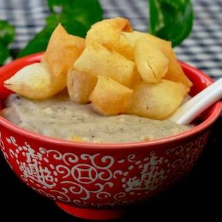 原料:花生、黄豆、粉条、青菜叶、小米面、熟花椒粉、熟八角粉、盐、肉桂粉、熟芝麻、中筋面粉、安琪油条膨松剂、温水、花生油。