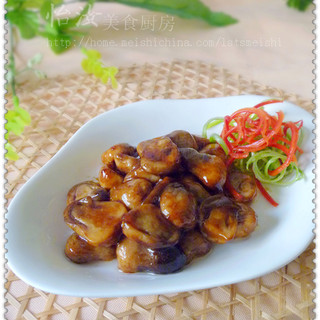 原料:草菇、李锦记蚝油、李锦记生抽、水、糖、青红丝。