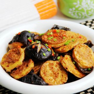 原料:素鸡、木耳、香菇、食用油、盐、红烧酱油、老抽、美极鲜、胡椒粉、姜蒜葱粒。