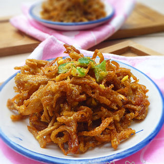 原料:杏鲍菇、咸蛋黄、葱、淀粉、盐、生抽、烹调油。