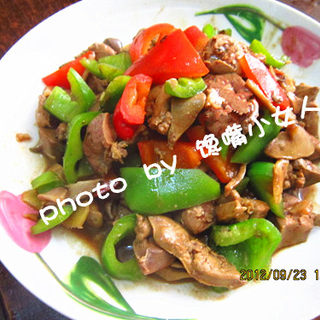 原料:鸡肝、青红椒、香菇、胡萝卜、蒜头、生姜、盐、白糖、水淀粉、六月鲜酱油、味达美蚝油、料酒、白胡椒粉。