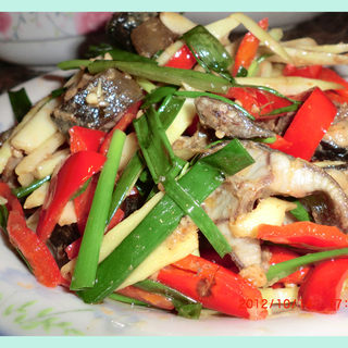 原料:黄鳝、红辣椒、竹笋、姜、蒜、葱、料酒。