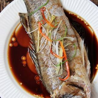 原料:鲈鱼、葱丝、姜丝、食用油、盐、李锦记蒸鱼豉油、料酒。