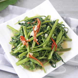 原料:通菜、红椒、蒜蓉、广式腐乳、腐乳汁、盐、鸡精、糖。
