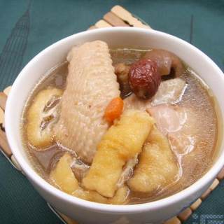 原料:黄鱼肚、鸡、姜、红枣、桂圆、枸杞。
