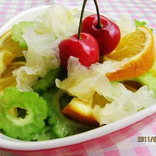 原料:银耳、苦瓜、甜橙、蜂蜜、白醋、橄榄油。