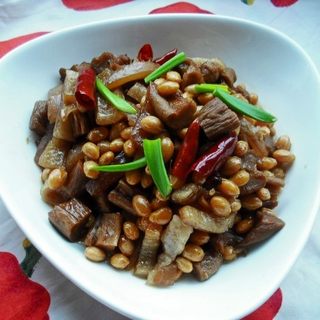 原料:芥菜疙瘩、黄豆、肉皮、油、盐、生抽、朝天椒、料酒、五香粉、鸡精。