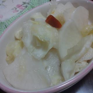 原料:大白菜、苹果、梨、鱼露、虾皮、葱、大蒜、姜、辣椒、盐、糖、味精。