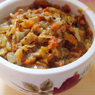原料:西红柿、洋葱、牛至叶、罗勒叶、蒜头、黄油、黑胡椒、盐、糖。