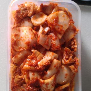 原料:白菜、萝卜、苹果、梨、葱白、去皮生姜、蒜、粗辣椒粉、细辣椒粉、鱼露、虾酱、牛肉粉、白糖、白酒。