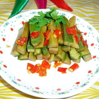 原料:黄瓜、姜蒜、辣椒、酱油、盐、糖。