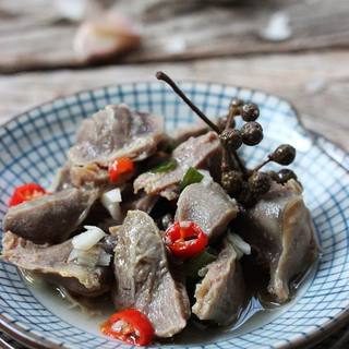 原料:鸡肫、小米椒、姜、蒜、香葱、青花椒、料酒、高汤、盐、香油。