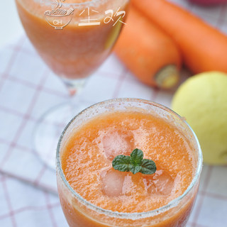 原料:胡萝卜、苹果、柠檬汁、薄荷、冰块。
