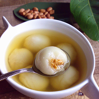 原料:糯米粉、糖粉、水、绿茶、澄粉、花生酱、花生仁。