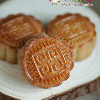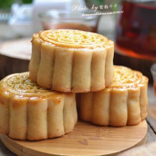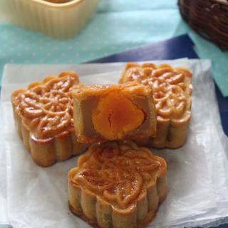 原料:低筋面粉、高筋面粉、转化糖浆、枧水、花生油、蛋黄、莲蓉、蛋黄液。