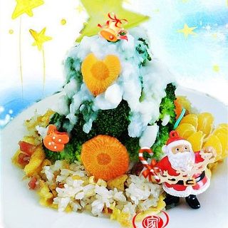 原料:米饭、西兰花、香肠、淮山、鸡蛋、杨桃、胡萝卜、桔子。