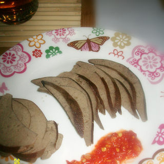 原料:鲜猪肝、葱、姜、红果、白萝卜、花椒、大料、红烧酱油、盐、白酒。