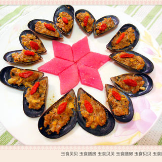 原料:青口贝、猪肉、虾仁、鸡蛋、枸杞子、冬瓜、苋菜、糖、醋。