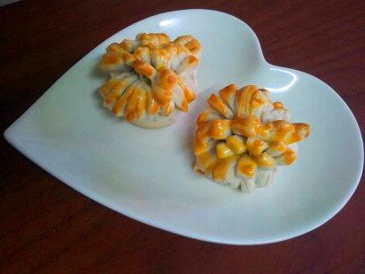 原料:低粉、高粉、猪油、白糖、清水、低粉、猪油、豆沙馅、蛋黄。