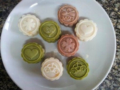 原料:糯米粉、粘米粉、小麦淀粉、哈密瓜馅、牛奶、食用油、白糖、可可粉、抹茶粉、熟糯米粉。