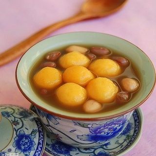 原料:红薯、姜、红枣、糯米粉、花生米、红豆、红糖、白糖。
