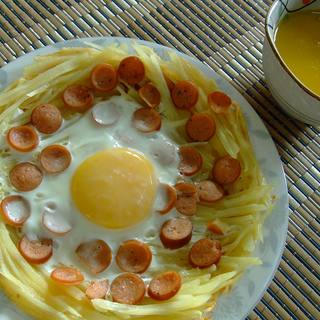 原料:土豆、鸡蛋、南瓜、大米、火腿、盐、黄油。