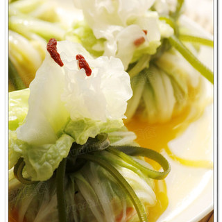 原料:豆腐、肉馅、香菇、胡萝卜、鸡蛋、南瓜、大白菜叶、海带丝。