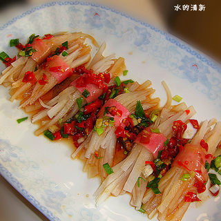 原料:萝卜、剁辣椒、葱、油、盐、老抽、白醋、味精。