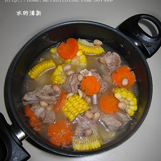 原料:排骨、胡萝卜、玉米、花生、姜、盐。