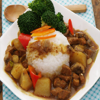 原料:大肉、土豆、咖喱、红椒、圆菇。
