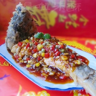 原料:鲢鱼、玉米粒、胡萝卜、豌豆、面粉、干淀粉、葱、生姜、大蒜、白糖、食用油。