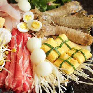 原料:濑尿虾、菠菜、青鱼片、油豆腐、小黄豆芽、粉皮、平菇、羊肉、冬瓜、金针菇、鹌鹑蛋、娃娃菜、鱼丸。