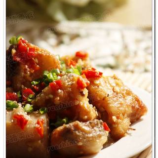 原料:鱼头、剁椒、泡椒、姜、茶油、盐、老抽、淀粉、糖。