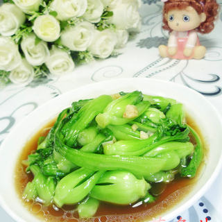 原料:鸡毛菜、蒜末。