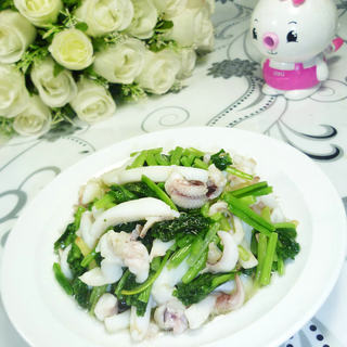 原料:墨鱼、咸菜、姜丝、料酒、盐。