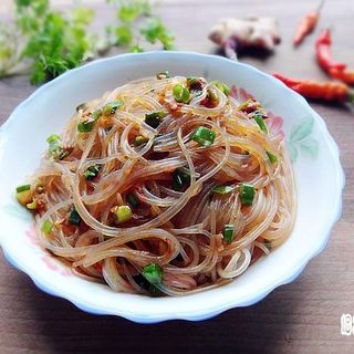 原料:龙口粉丝、香辣虾籽酱、葱、姜、酱油、盐、油辣椒。