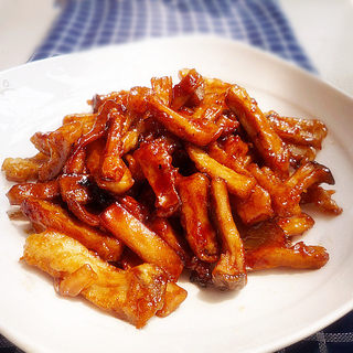 原料:杏鲍菇、料酒、老抽、醋、白糖、姜片、食盐。