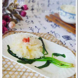 原料:银耳、菠菜、枸杞、盐、糖、味精、香油。