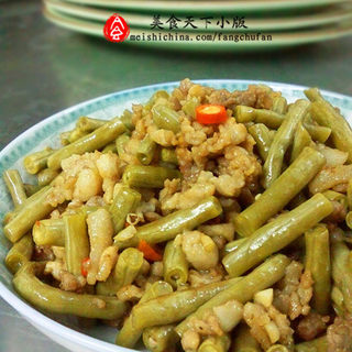 原料:酸豆角、五花肉、姜、蒜米、红尖椒、料酒、生抽、淀粉、白沙糖。