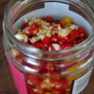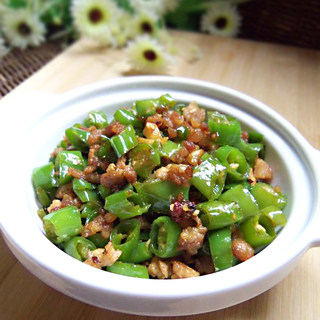 原料:辣椒、瘦肉、油、蒜、花椒、生抽、盐。