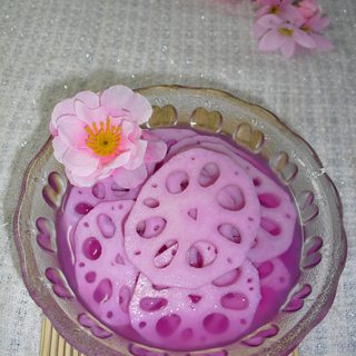 原料:白莲藕、紫甘蓝、白醋、蜂蜜。