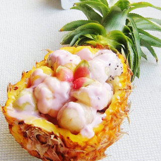 原料:菠萝、香蕉、火龙果、山竹、荔枝、酸奶。