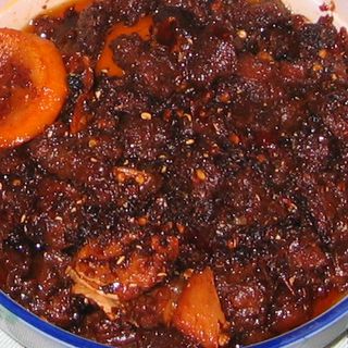 原料:牛里脊、花椒、橙子皮、油、姜、郫县豆瓣、冰糖、高度白酒、盐。
