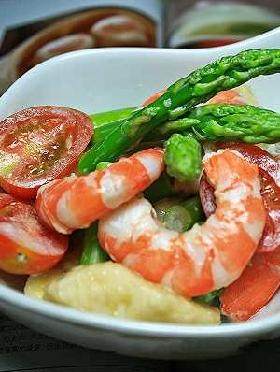 原料:北极甜虾、芦笋、小西红柿、香蕉、沙拉酱、糖。