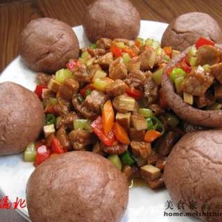 原料:高粱面、小麦面、酵母菌、面粉、牛肉、小苏打、盐、味精、蛋清、淀粉、酱油、莴苣、胡萝卜、青红辣椒、茶干。