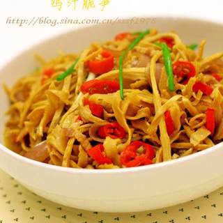 原料:脆笋、尖红椒、五花肉、洋葱、葱段。